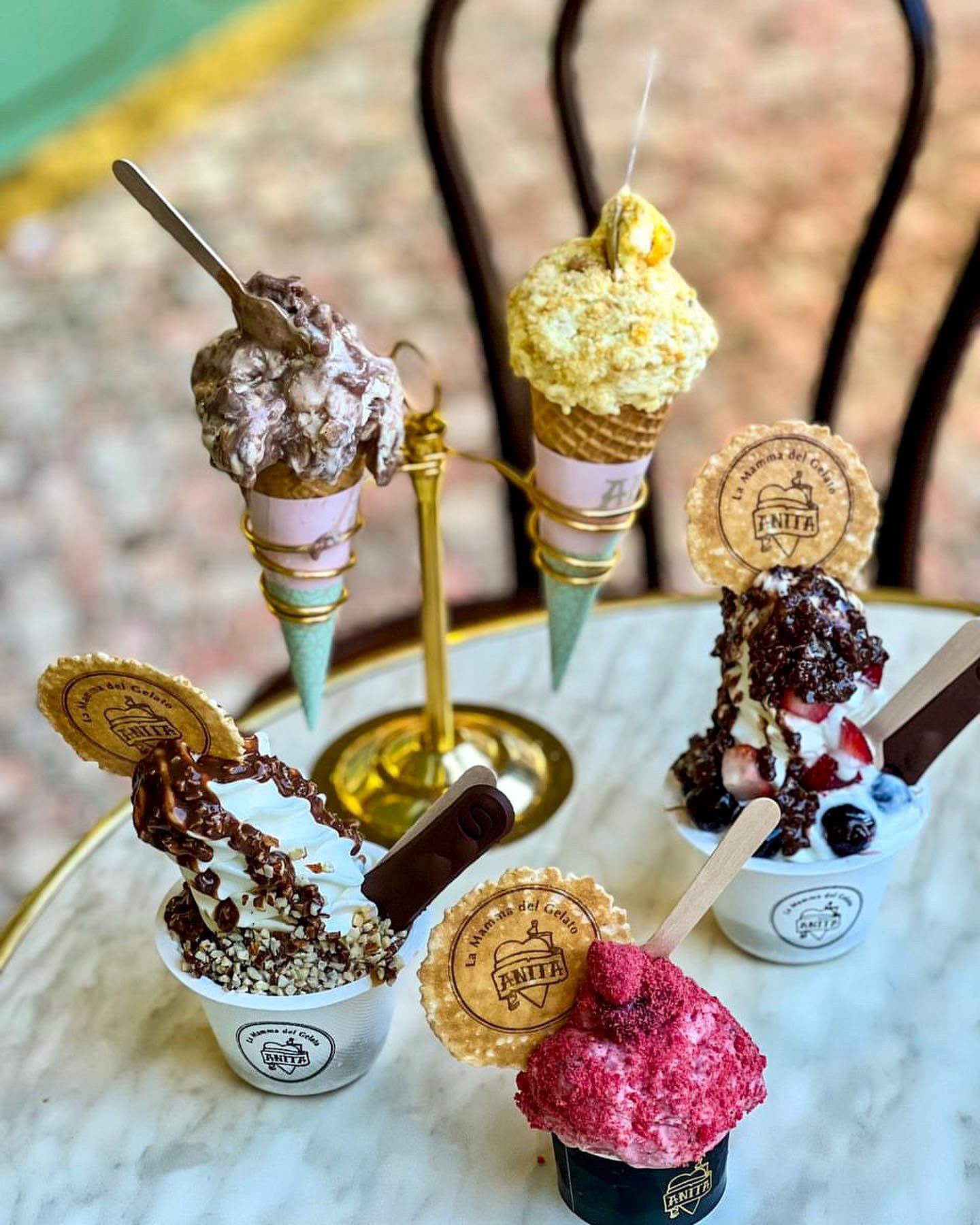 Anita’s boutique ice creams are 100% hand-made, and whatever your favourite flavor, Anita has you covered. You can pick from over 150 different kinds of frozen yogurt, sorbets, and organic sugar- free, fat-free, soy-based and real cream-based ice creams. Tempting toppings include fresh fruit, syrups, premium chocolate, and in particular, the jams, that still come straight from Mama Anita’s own kitchen. Each new flavor still has to get Mama Anita’s personal stamp of approval, and her heavenly touch can be tasted in every scoop.